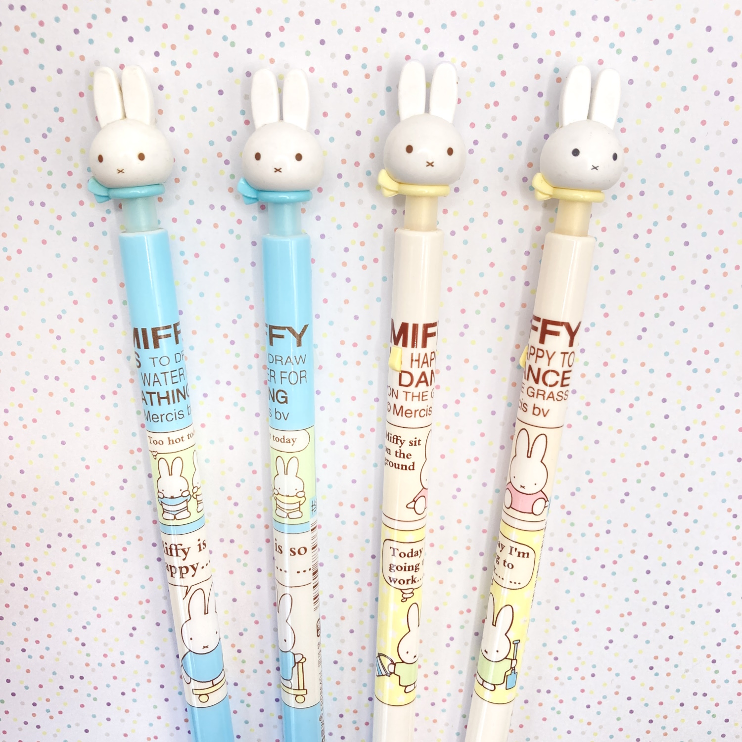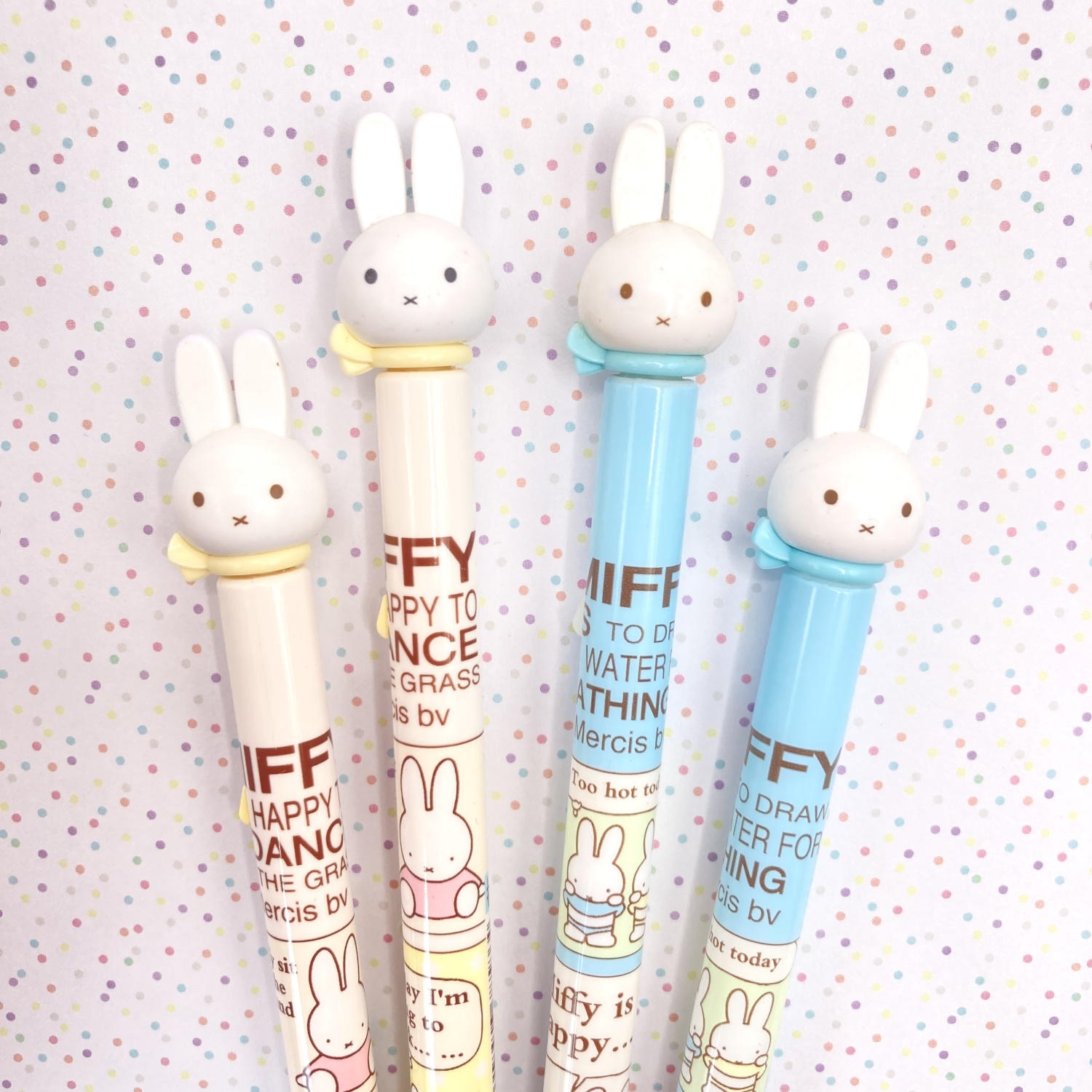 We all know Miffy likes having fun, and these ballpoint pens show her doing just that. Two designs show images of various activities, including Miffy riding her scooter and happily swinging a bucket and a spade. But the most fun thing about these pens is the cute rubberised Miffy head at the top. Press it down to activate the pen, and away you go with Miffy overseeing all your written work. That’s enough to make anyone as happy as a bunny.