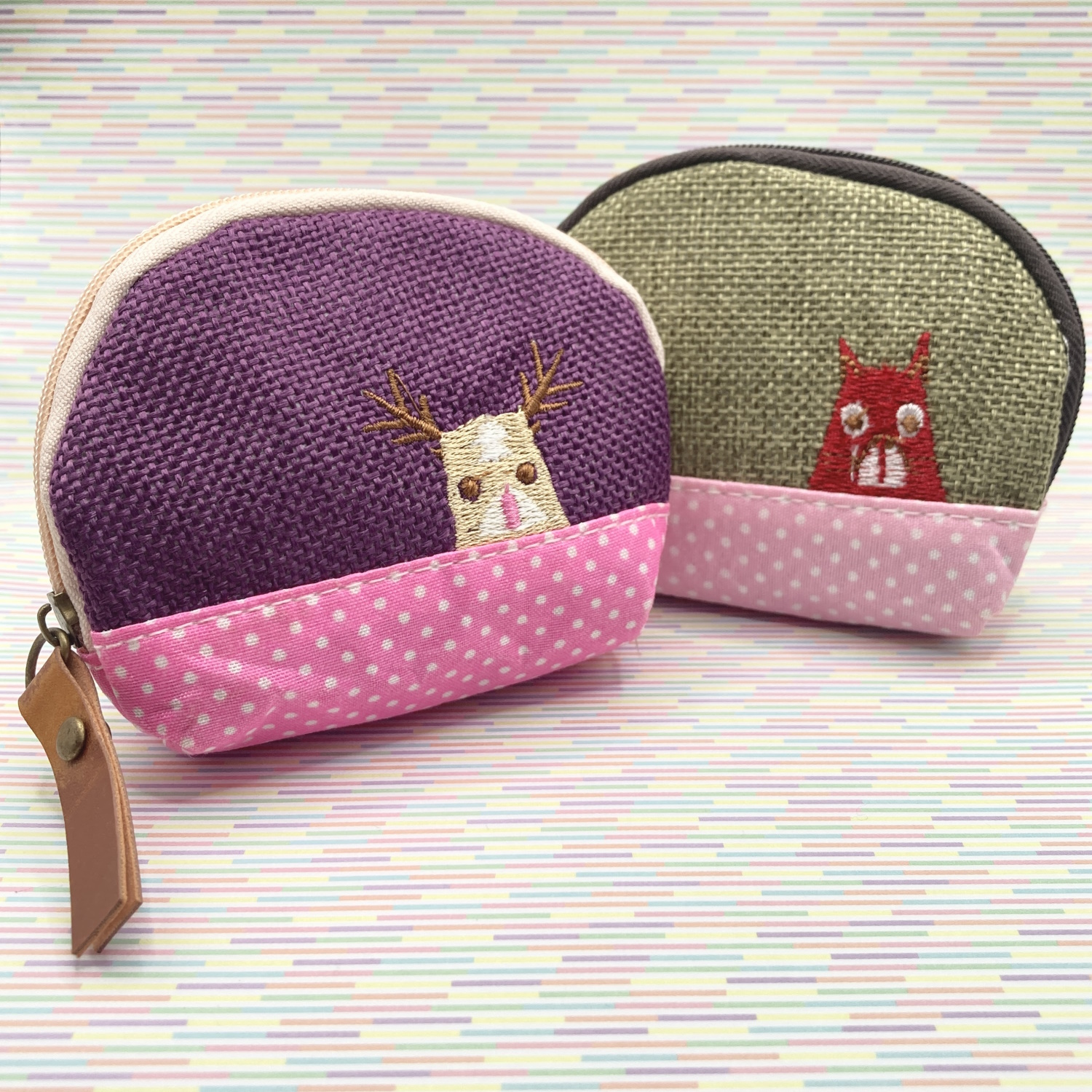These cute little coin purses are decorated with embroidered images of familiar woodland animals, which also feature on our popular Animal pencil cases.  Made from a woven fabric with a cotton lining, these purses are sturdy, durable, and surprisingly spacious, capable of holding a copious amount of spare change. Measuring approximately 10cm x 8.5cm x 2.5cm, with a secure zip fastening, they are the perfect size to fit in a pocket. They are also ideal for keeping your keys in, eliminating that frantic doorstep bag rummaging that we all do.